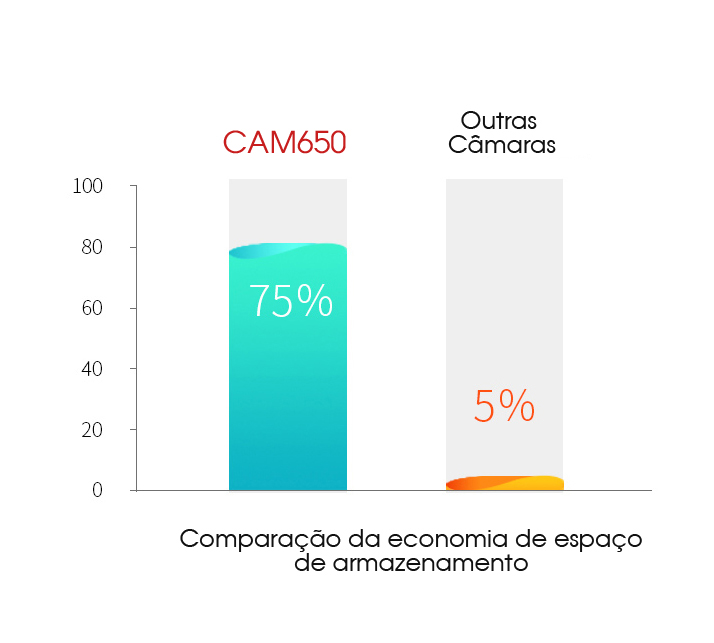 A câmara suporta vídeo de longa duração, utiliza o vídeo comprimido quando o movimento não é detetado para otimizar o espaço de armazenamento, e grava à velocidade máxima de 30FPS quando o movimento é detetado, economizando assim um enorme espaço de armazenamento.