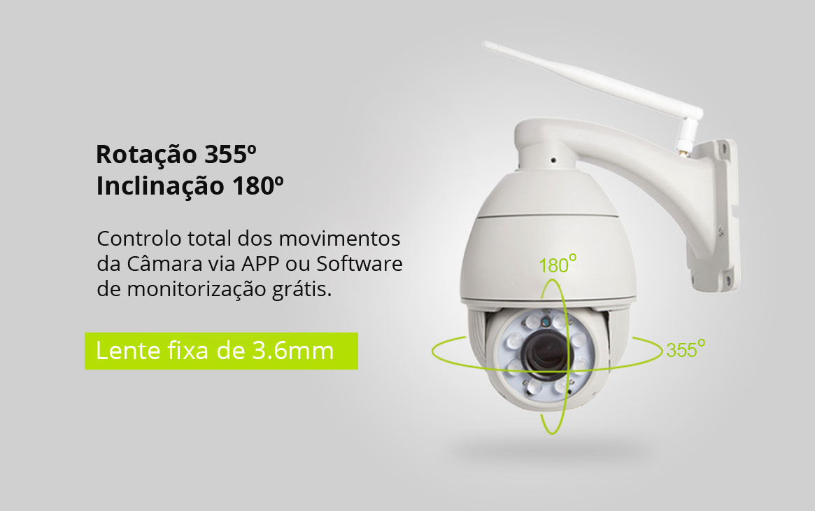 CAM80 - Câmara Giratória PTZ IP Sem Fios ou ligação por cabo RJ45 com 5X Zoom. Câmara de Vigilância para exterior com 720P, Visão Noturna, Detecção de Movimento e visualização Remota